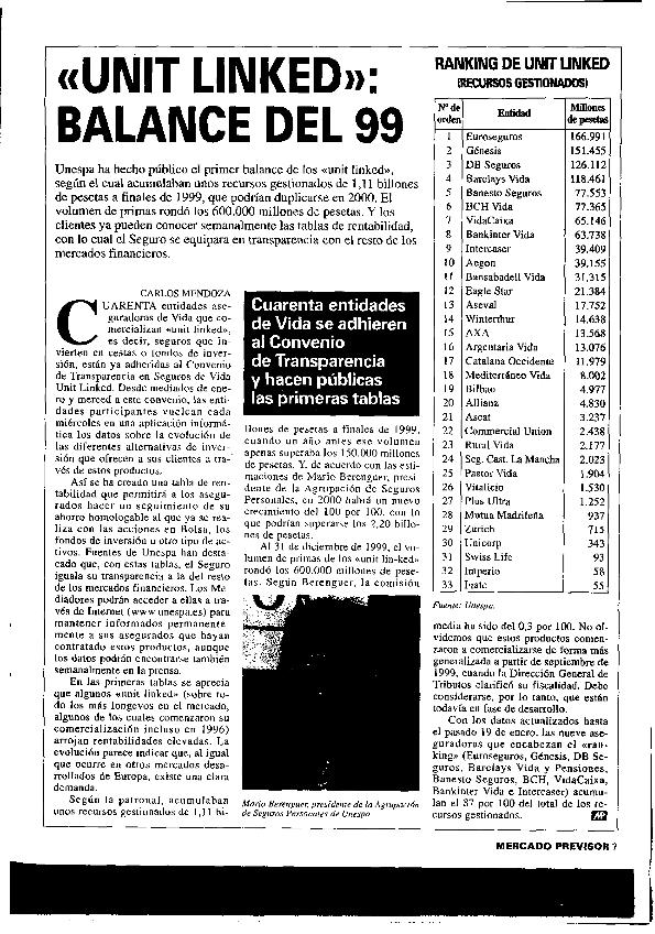 En: Mercado previsor. - Madrid : Ediciones de Negocios, S.L., 1982-2025. - nº 326, 15 de Octubre 2000 ; p. 7