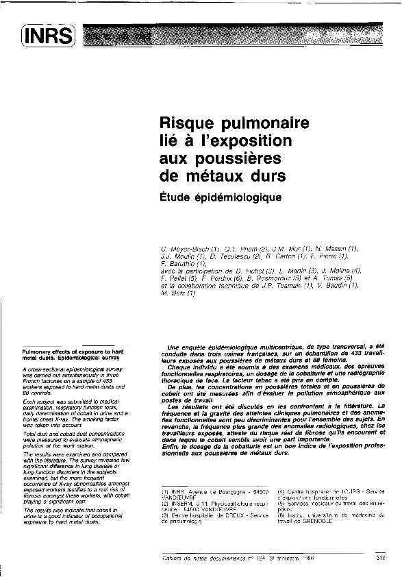 Risque pulmonaire lié à l'exposition aux poussières de métaux durs : étude épidémiologique