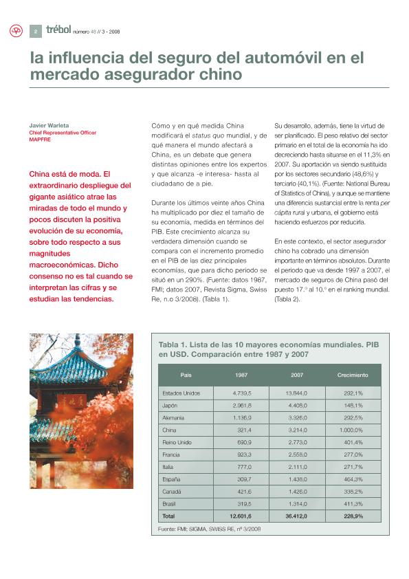 - En: Trébol. - Madrid : MAPFRE RE, 1996-2015 = ISSN 1137-246X. - 01/08/2008 Número 48 - agosto 2008, p. 2-6