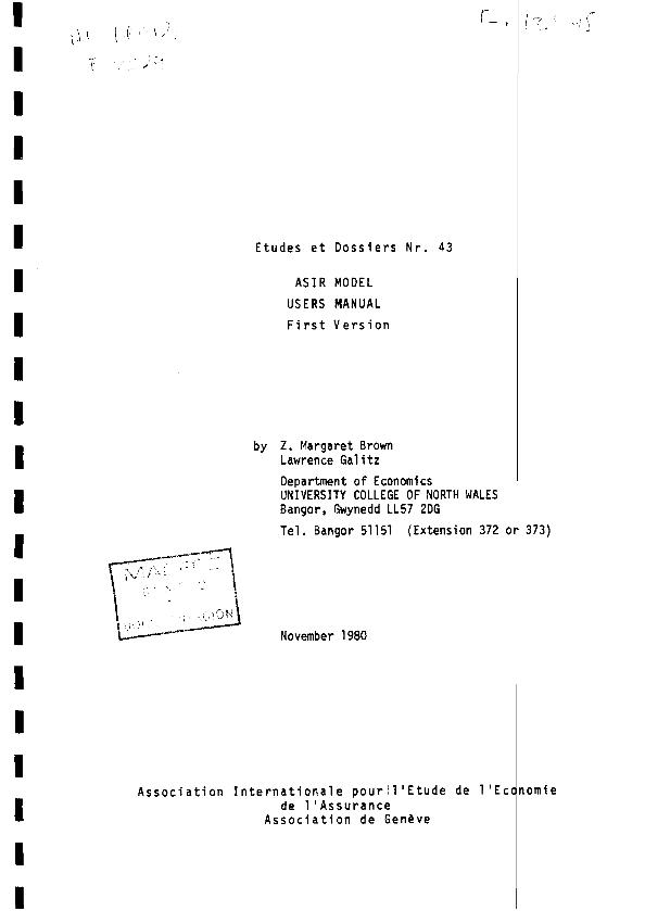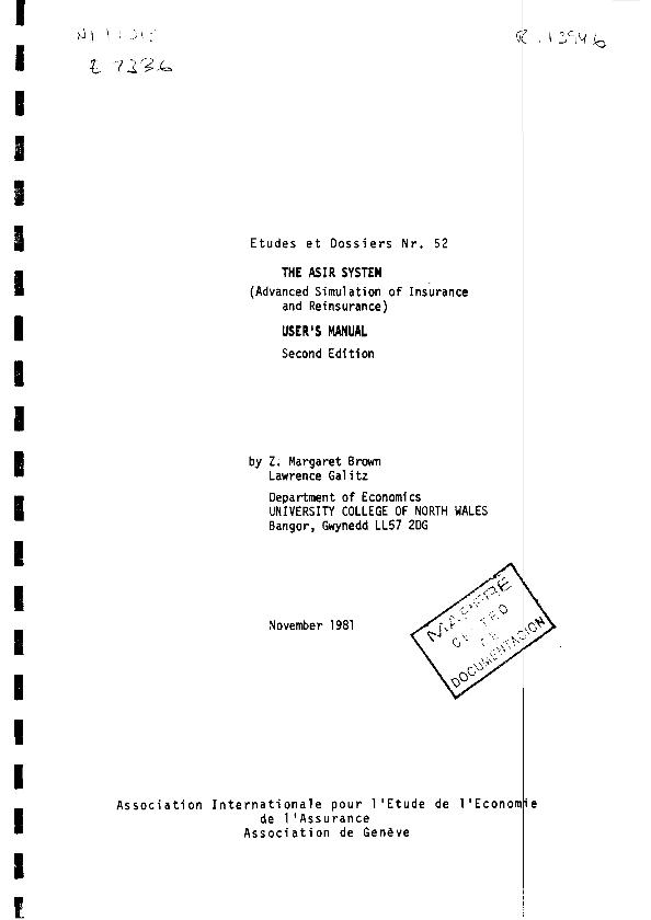- En: Geneva papers on risk and insurance : issues and practice. - Geneva : The Geneva Association, 1976- = ISSN 1018-5895. - 01/04/1981 Tomo 6 Número 2 - 1981