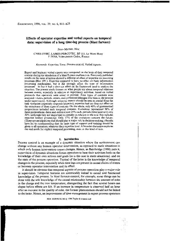 Effects of operator expertise and verbal reports on temporal data : supervision of a long time...