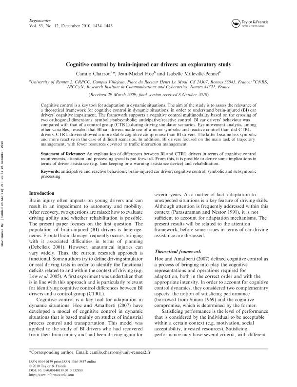 Cognitive control by brain-injured car drivers : an exploratory study