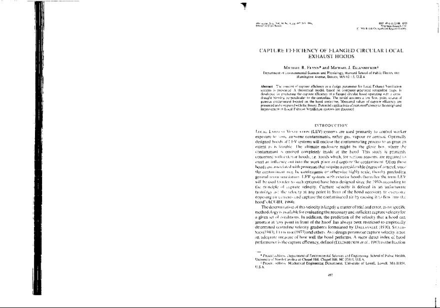 Capture efficiency of flanged circular local exhaust hoods