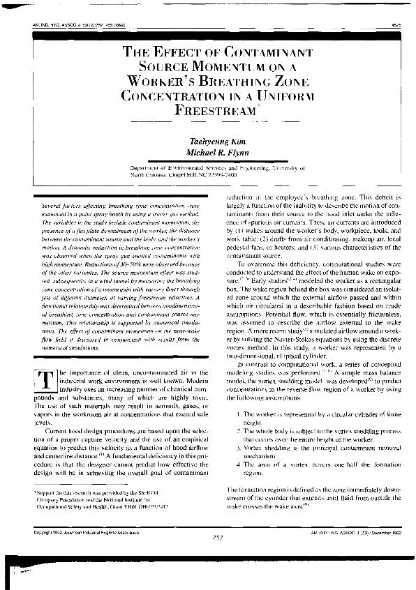 The Effect of contaminant source momentum on a worker's breathing zone concentration in a uniform...
