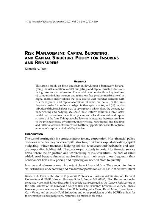 - En: Risk management & insurance review. - Malden, MA : The American Risk and Insurance Association by Blackwell Publishing, 1999- = ISSN 1098-1616. - 11/10/2008 Tomo 11 Número 2 - 2008