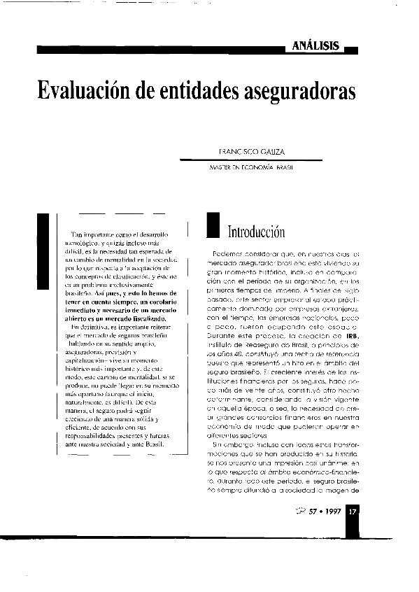 Evaluación de entidades aseguradoras