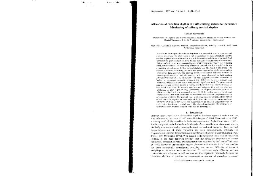 Alteration of circadian rhythm in shift working ambulance personnel : monitoring of salivary...