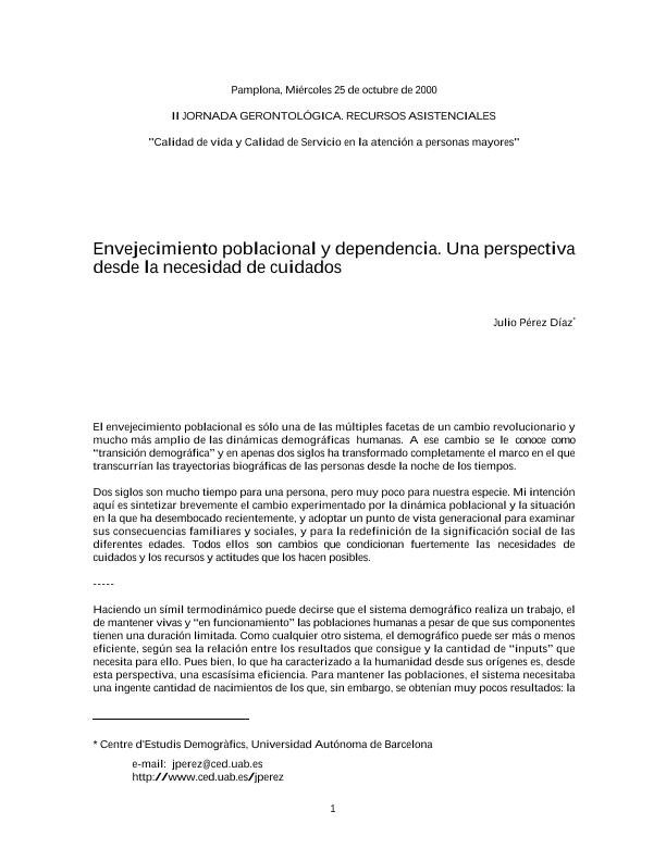En: II Jornada Gerontológica. Recursos Asistenciales : "Calidad de vida y calidad de servicio en la atención a personas mayores". - Pamplona. - 25 de octubre de 2000 ; [12] p