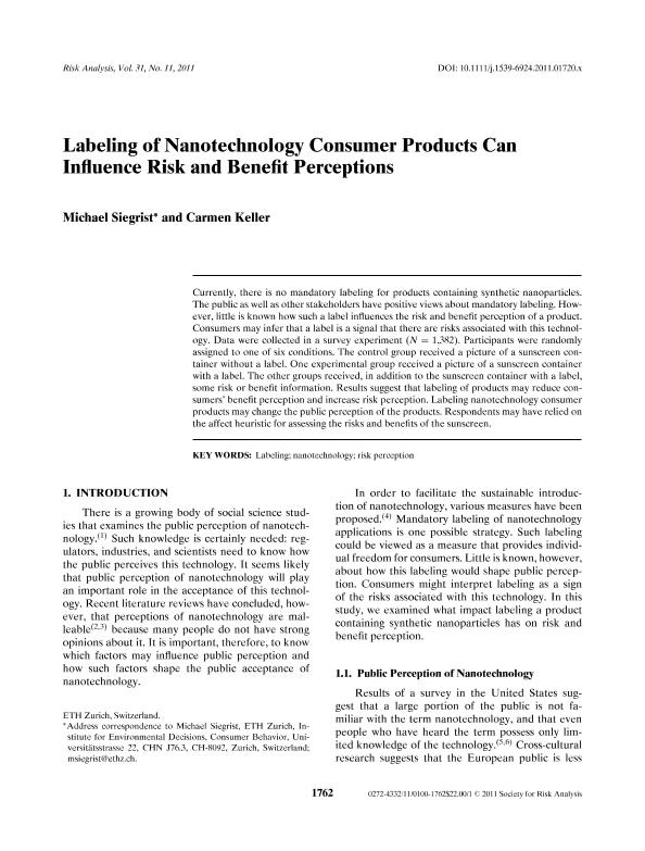 - En: Risk analysis : an international journal. - McLean, Virginia : Society for Risk Analysis, 1987-2015 = ISSN 0272-4332. - 06/08/2012 Volumen 32 Número 8 - agosto 2012