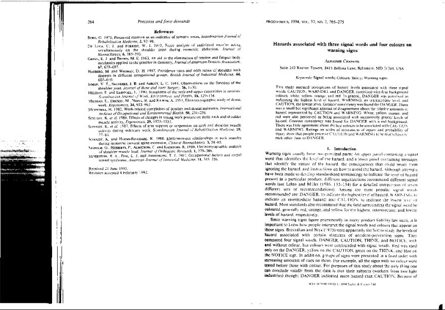 En: Ergonomics. - London and Washington. - Vol. 37, nº 2, February 1994 ; p. 265-275