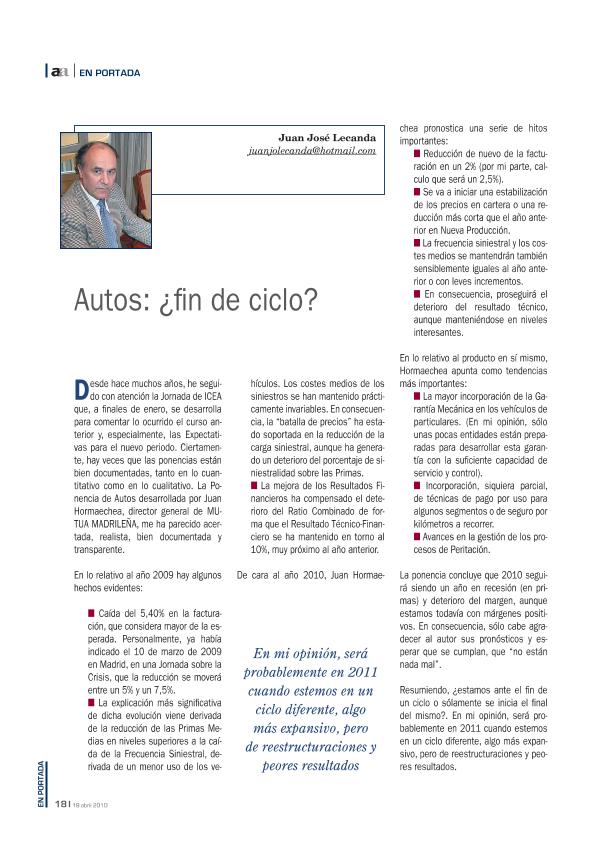 - En: Actualidad aseguradora. - Madrid : INESE, 1972- = ISSN 0012-947X. - Número 35 - 2010