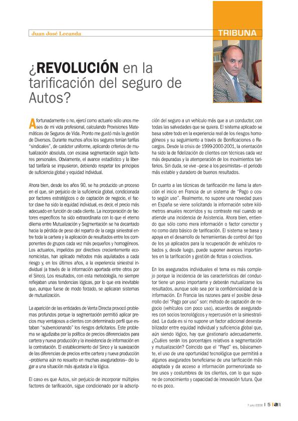 - En: Actualidad aseguradora. - Madrid : INESE, 1972- = ISSN 0012-947X. - 11/08/2008 Número 30 - 2008
