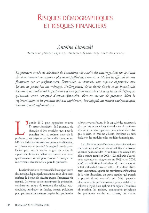 Risques démographiques et risques financiers