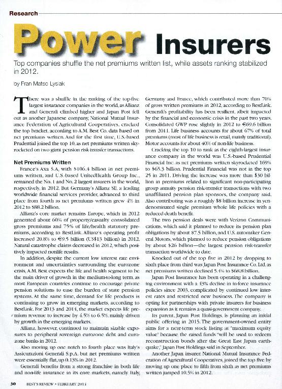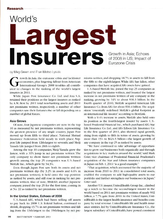 - En: Best's Review. - New Jersey : A.M. Best Company, 1976- = ISSN 1527-5914. - 13/03/2009 Tomo 109 Número 11 - 2009