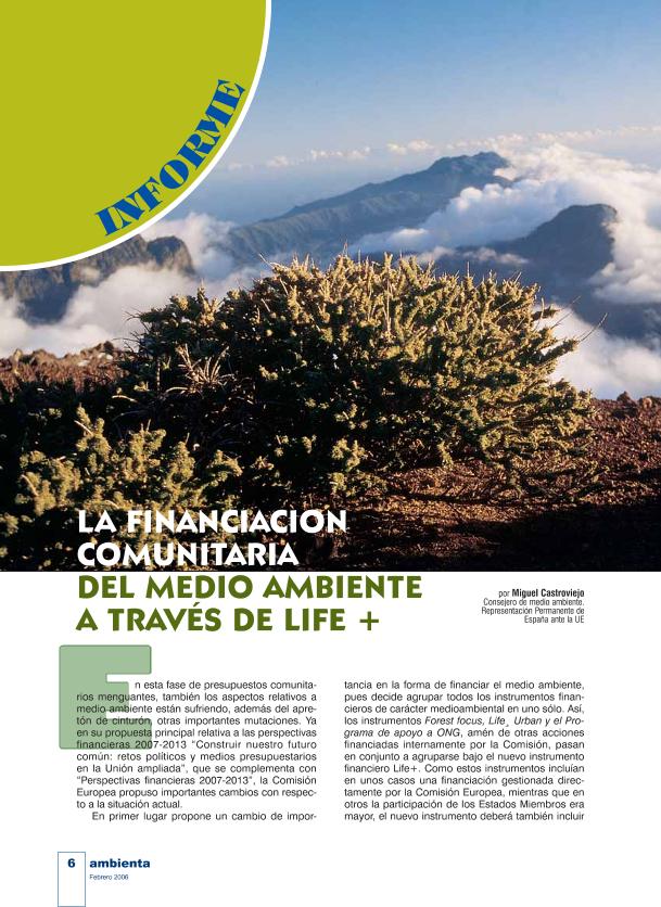 En: Ambienta. - Madrid : Ministerio de Medio Ambiente y Medio Rural y Marino, 2002- = ISSN 1577-9491. - 02/01/2006 Número 52 - Mes Febrero