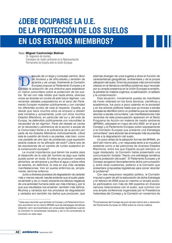 En: Ambienta. - Madrid : Ministerio de Medio Ambiente y Medio Rural y Marino, 2002- = ISSN 1577-9491. - 08/01/2007 Número 69 - Mes Septiembre