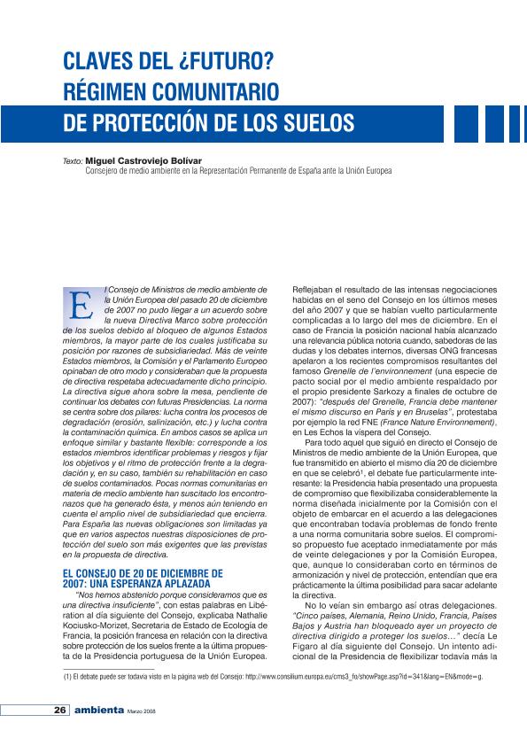 Claves del ¿futuro?: régimen comunitario de protección de los suelos