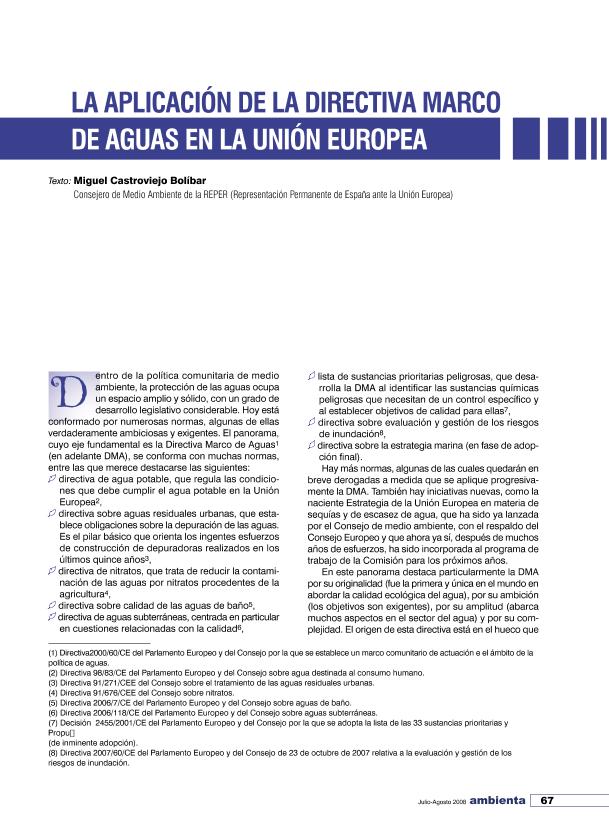 La Aplicación de la Directiva Marco de Aguas de la Unión Europea