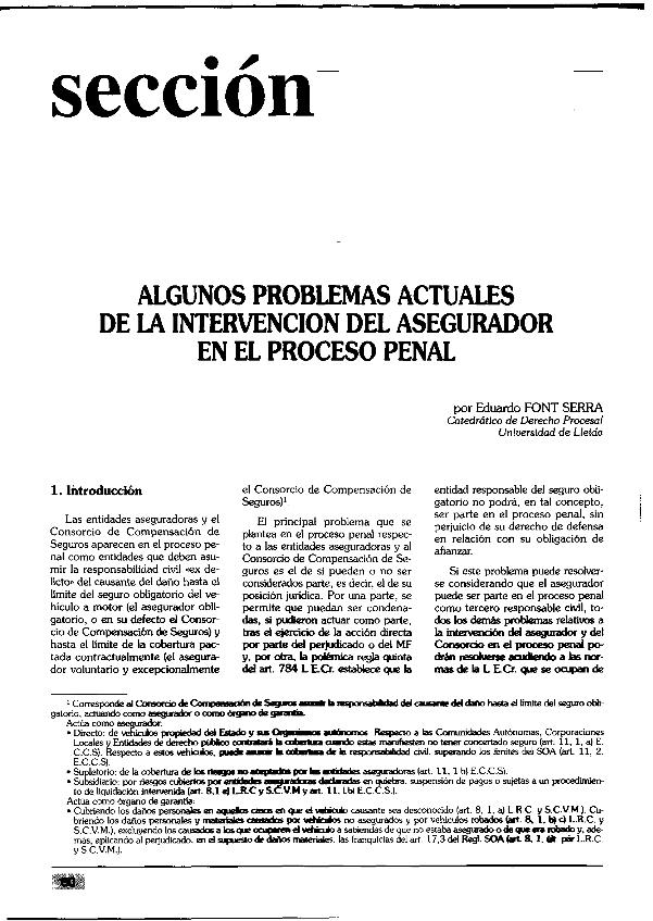 Algunos problemas actuales de la intervención del asegurador en el proceso penal