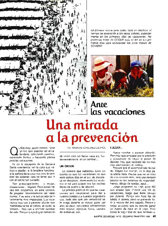Ante las vacaciones : una mirada a la prevención