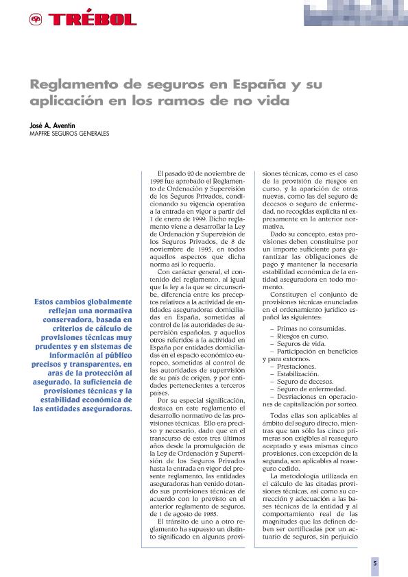 - En: Trébol. - Madrid : MAPFRE RE, 1996-2015 = ISSN 1137-246X. - 01/04/1999 Número 11 - abril 1999, p. 5-7