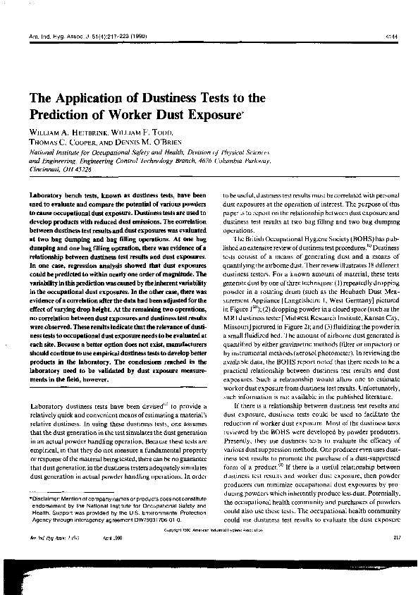 - En: Journal of occupational and environmental hygiene. - Cincinnati, Ohio : American Industrial Hygiene Association : American Conference of Governmental Industrial Hygienists. - Vol. 2, nº 10, October 2005 ; p. 516-523