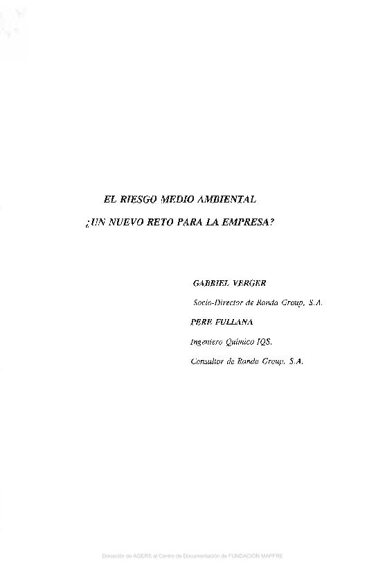 El Riesgo medio ambiental, ¿un nuevo reto para la empresa?