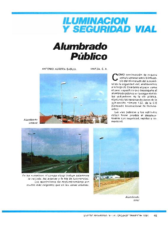 Iluminación y seguridad vial (II) : alumbrado público