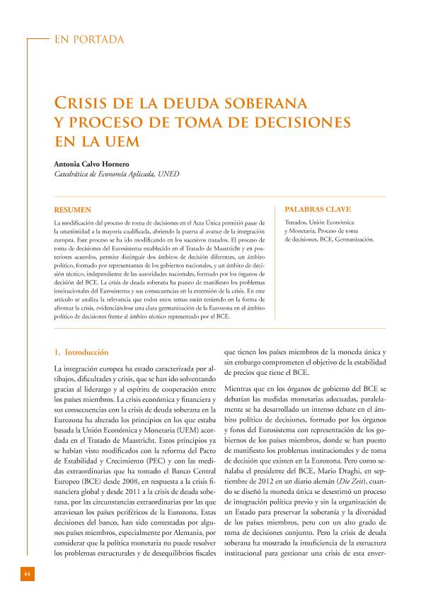Crisis de la deuda soberana y proceso de toma de decisiones en la UEM