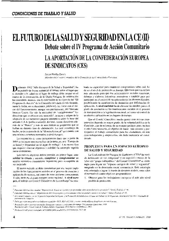 El Futuro de la salud y la seguridad en la CE (II) : la aportación de la Confederación Europea de...