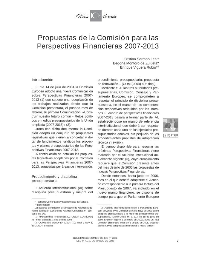 Propuestas de la Comisión para las perspectivas financieras 2007-2013