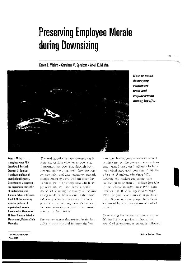 Preserving employee morale during downsizing