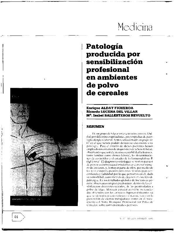 Patología producida por sensibilización profesional en ambientes de polvo de cereales