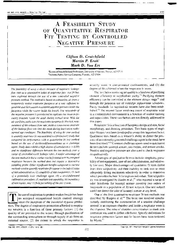 A Feasibility study of quantitative respirator fit testing by controlled negative pressure