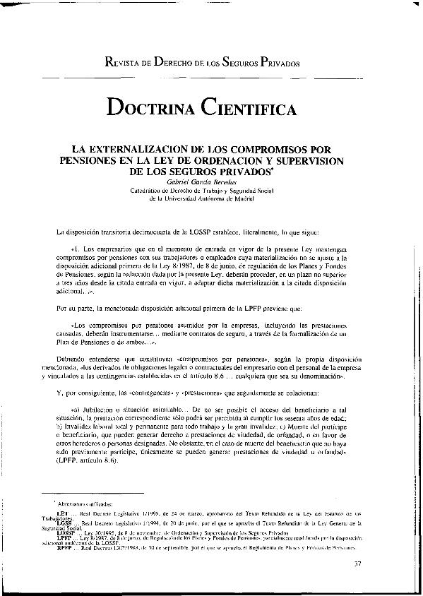 La Externalización de los compromisos por pensiones en la Ley de Ordenación y Supervisión de los...