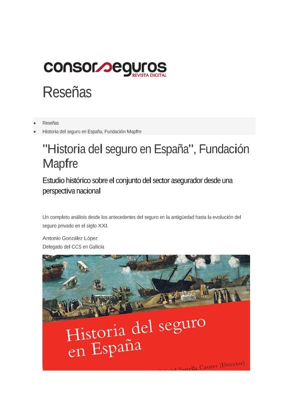 "Historia del seguro en España", FUNDACIÓN MAPFRE : estudio histórico sobre el conjunto del...