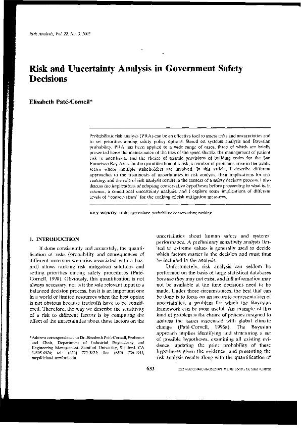 - En: Risk analysis : an international journal. - McLean, Virginia : Society for Risk Analysis, 1987-2015 = ISSN 0272-4332. - 07/07/2014 Volumen 34 Número 7 - julio 2014