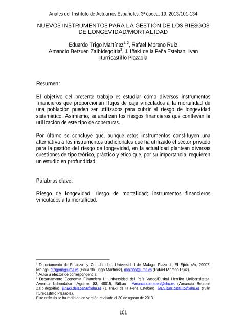 - En: Anales del Instituto de Actuarios Españoles : Colegio Profesional. - Madrid : Instituto de Actuarios Españoles, 1943-. - 09/12/2013 Número 19 Epoca 3ª época - 2013 , p. 101-134