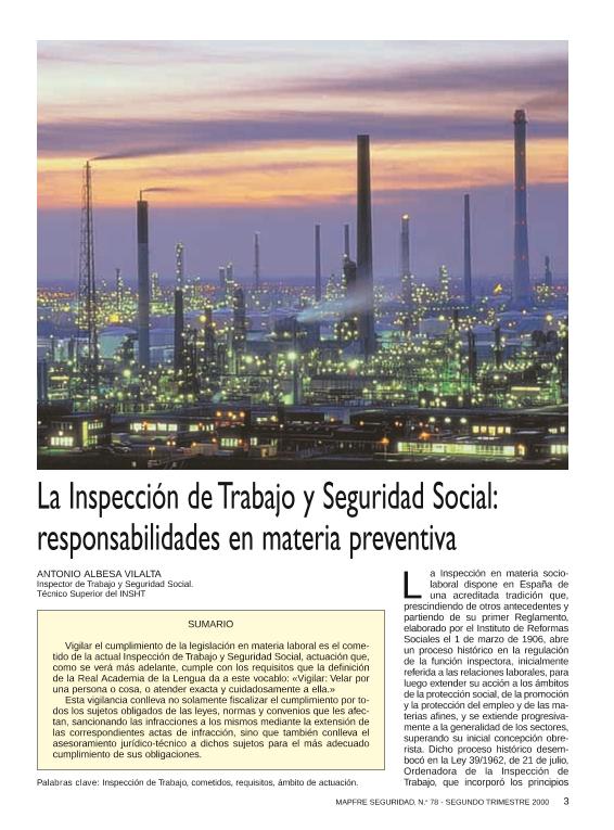 La Inspección de Trabajo y Seguridad Social : responsabilidades en materia preventiva