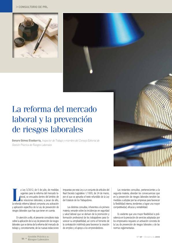 - En: Gestión práctica de riesgos laborales. - Madrid : Wolters Kluwer, 2005- = ISSN 1698-6881. - 03/12/2012 Número 99 - diciembre 2012