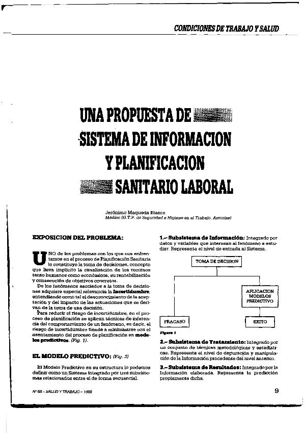 Una Propuesta de sistema de información y planificación sanitario laboral