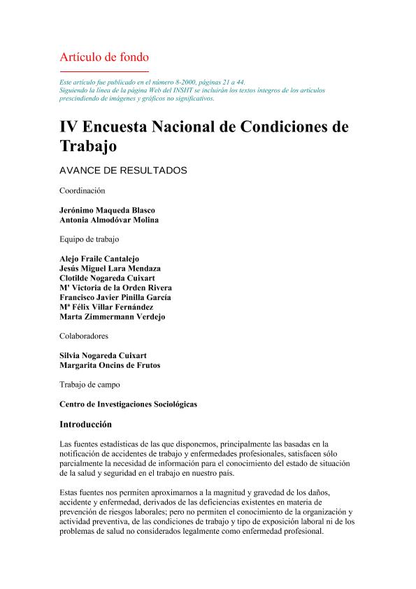 IV Encuesta Nacional de Condiciones de Trabajo : avance de resultados