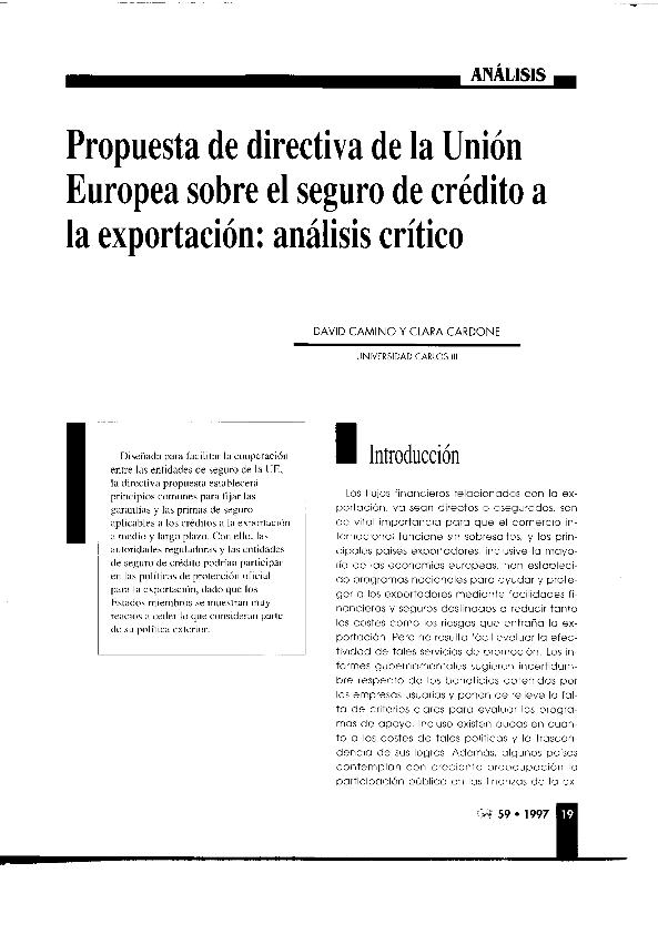 Propuesta de directiva de la Unión Europea sobre el seguro de crédito a la exportación : análisis...