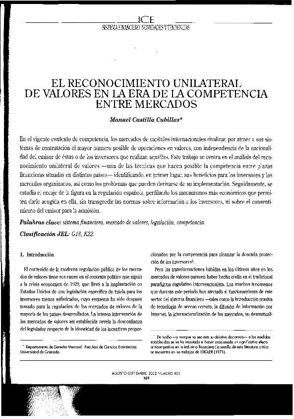 El Reconocimeinto unilateral de valores en la era de la competencia entre mercados