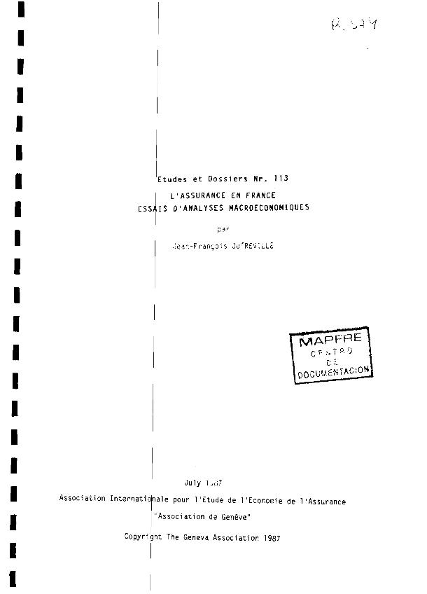 - En: Geneva papers on risk and insurance : issues and practice. - Geneva : The Geneva Association, 1976- = ISSN 1018-5895. - 02/06/1980 Tomo 5 Número 3 - 1980