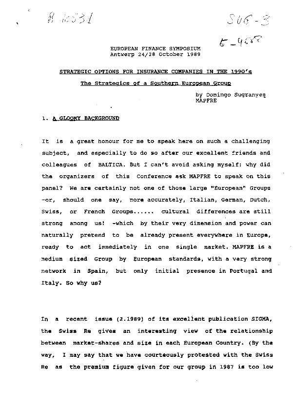 Strategic options for insurance companies in the 90's : the strategics of a Southern European Group