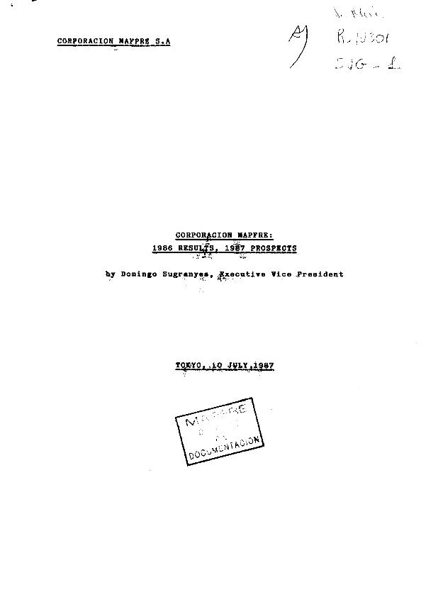 Corporación MAPFRE : 1986 results, 1987 prospects