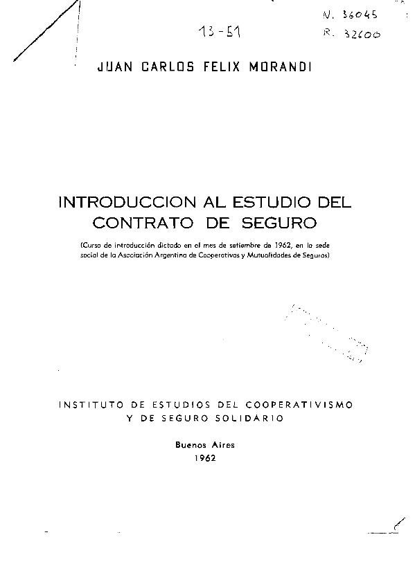 Introducción al estudio del contrato de seguro : curso de introducción dictado en el mes de...