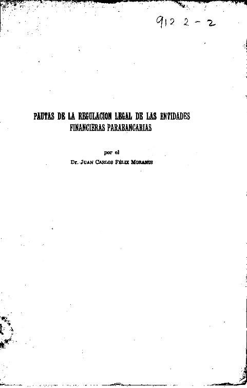 Pautas de la regulación legal de las entidades financieras parabancarias