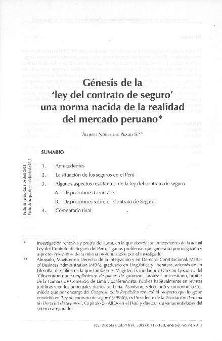 En: Revista Ibero-Latinoamericana de Seguros. - Bogotá : Pontificia Universidad Javeriana, 1992- = ISSN 0123-1154 (impreso). - 07/01/2013 Número 38 - 2013 , p. 117-150